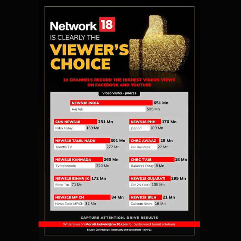 Mumbai: Network18’s digital platforms have achieved exceptional performance by garnering the highest number of video views on YouTube and Facebook in June 2023. Recent studies conducted...