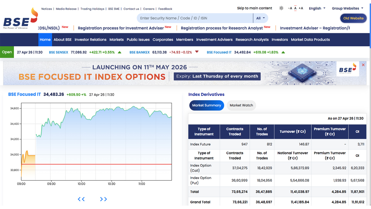 A key highlight of the revamp is the sharper focus on real-time market data. A live ticker band now runs across the site, offering updates on indices including the SENSEX and BANKEX, alongside pre-open market signals. The homepage also features interactive charts, giving users a quick visual read of market trends without needing to navigate deeper.