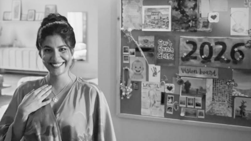 The hero film, starring Shreya Dhanwanthary, captures this shift beautifully. Set against the quiet focus of a 2026 vision-board ritual, the narrative follows a woman articulating her aspirations with intention culminating in the striking realisation, “To manifest my best life, a billion years of cosmic energy, from nature’s heart to mine; a natural diamond.”