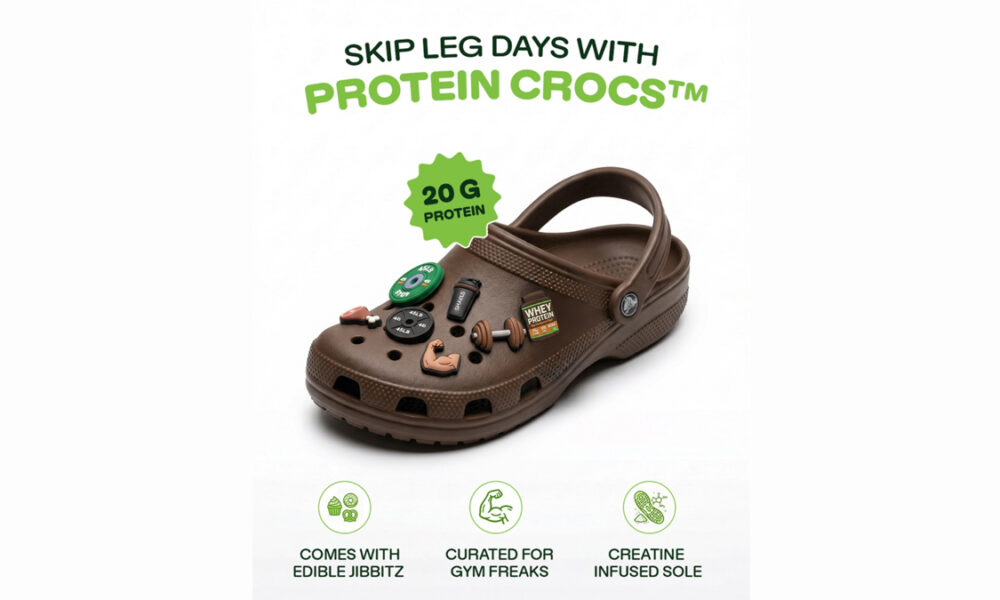The footwear brand taps into India's gym-rat obsession with a deadpan fake product complete with edible Jibbitz and a creatine-infused sole