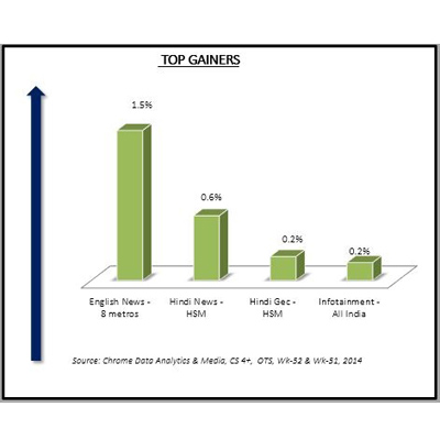 MUMBAI: The English News in the eight metros gained the most when it comes to opportunity to see (OTS) collated by Chrome Data Analytics & Media...