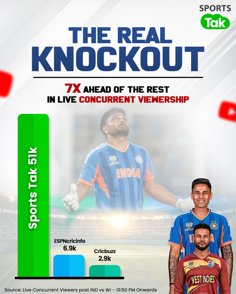 Sports Tak, India’s leading digital cricket platform, delivered a commanding performance post the India vs West Indies quarter final, emerging as the clear leader in live concurrent viewership among major cricket platforms.